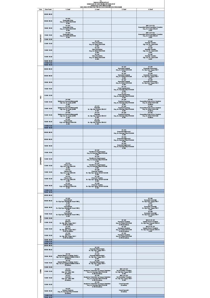 2025-2026 Eğitim Öğretim Yılı Bahar Dönemi Lisans Ders Programı Güncellemesi